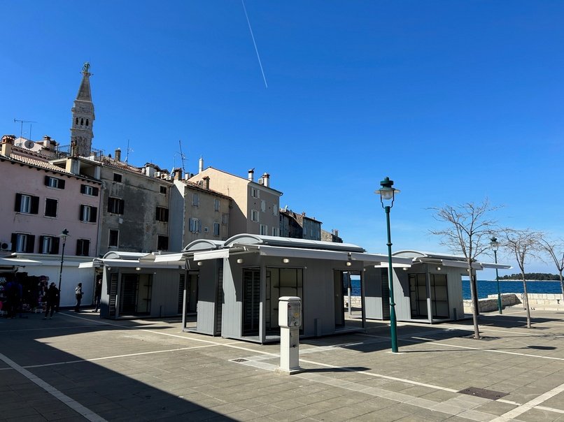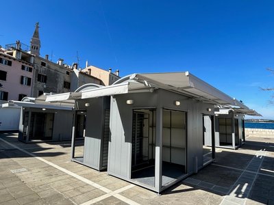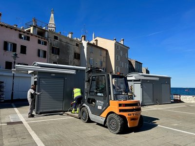 Štandove su 16. i 17. ožujka 2023. godine postavili djelatnici KOMUNALNI SERVIS d.o.o. (OJ Tržnica i OJ Parkiralište) u suradnji s proizvođačem EURO MODUL d.o.o. iz Rijeke.