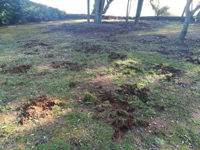 Ponovo se susrećemo sa većim štetama na Punta Corrente i Kuvima. Divlje svinje oštetile su koru stablašica bora zasađenih prije desetak godina. Oštećeni su travnjaci i prekopane livade.