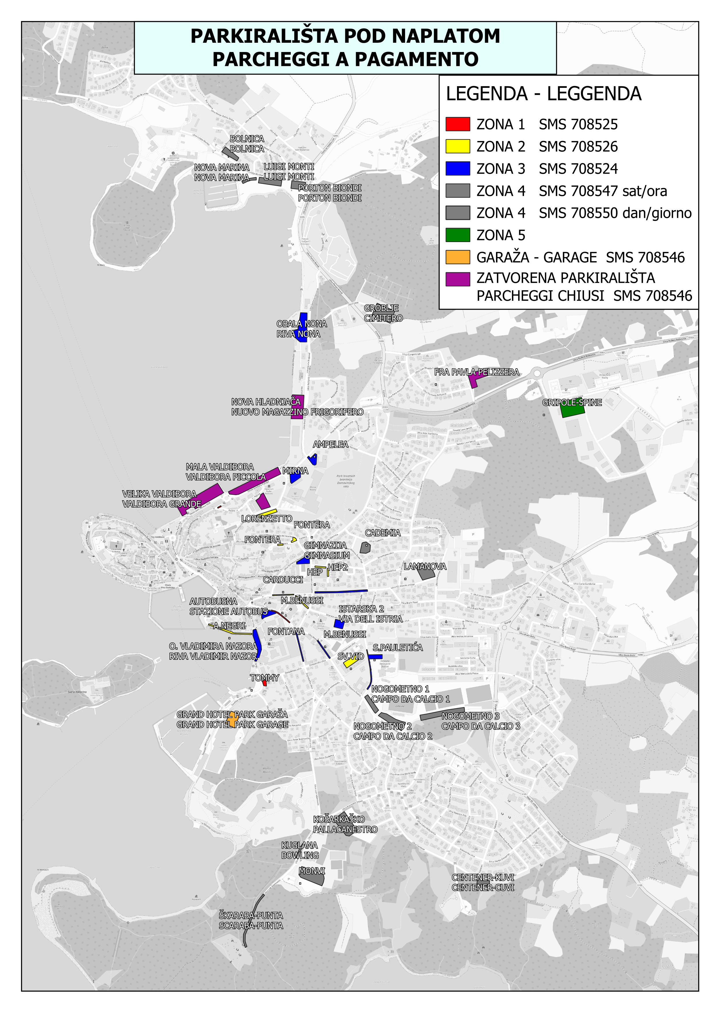ZONA 5 (isključivo za parkiranje autobusa, kampera i kamiona): Gripole – Spine'.