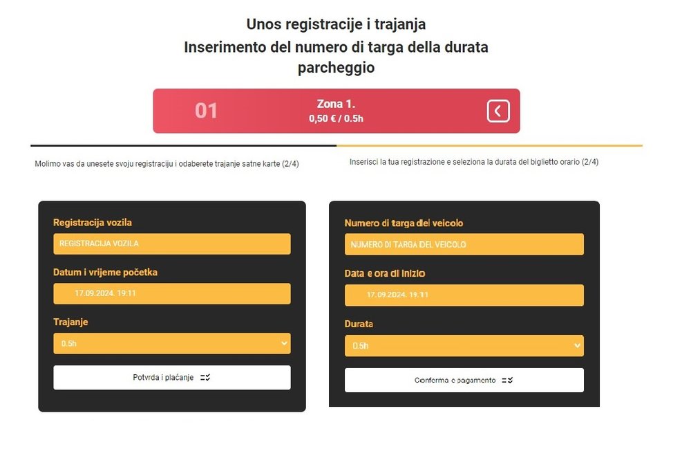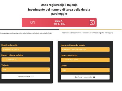 Sul portale disponibile all'indirizzo portal.komunalniservis.hr, gli utenti possono acquistare biglietti orari e giornalieri, nonché saldare il debito per il biglietto giornaliero per il parcheggio.