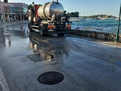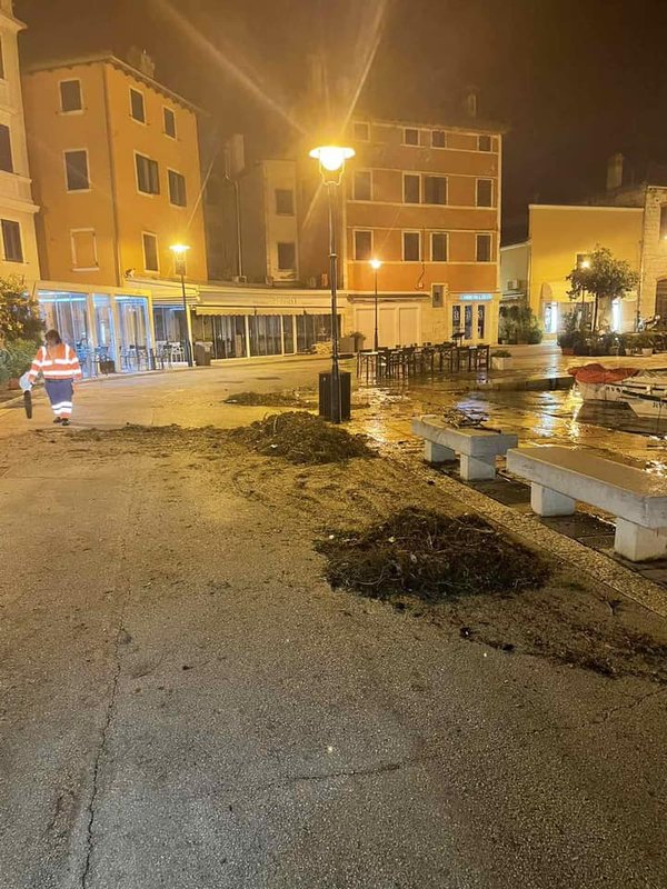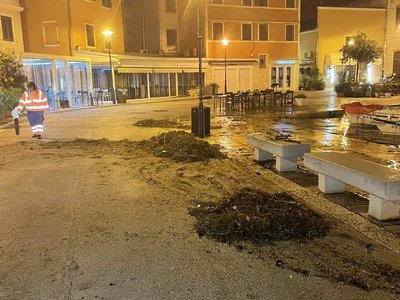 Nakon jučerašnjeg nevremena i prelijevanja mora uz pomoć vatrogasaca i policije premještena su ugrožena vozila na parkiralištima Aldo Negri i Valdibora, a jutros su naši vrijedni radnici odmah izašli na teren i očistili grad od naplavina.