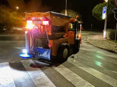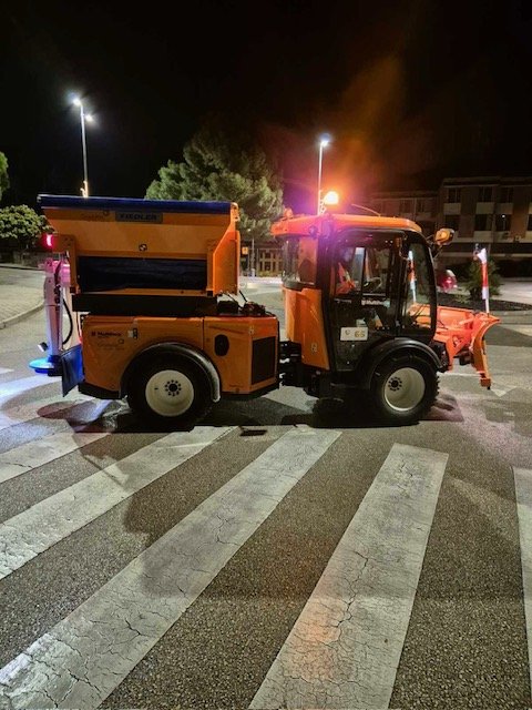 Zbog niske temperature i moguće poledice u tijeku je posipavanje cesta sa soli.
